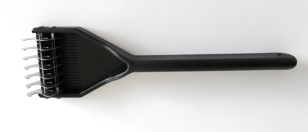 Der Striegel mit 7 fest verbauten Klingen.